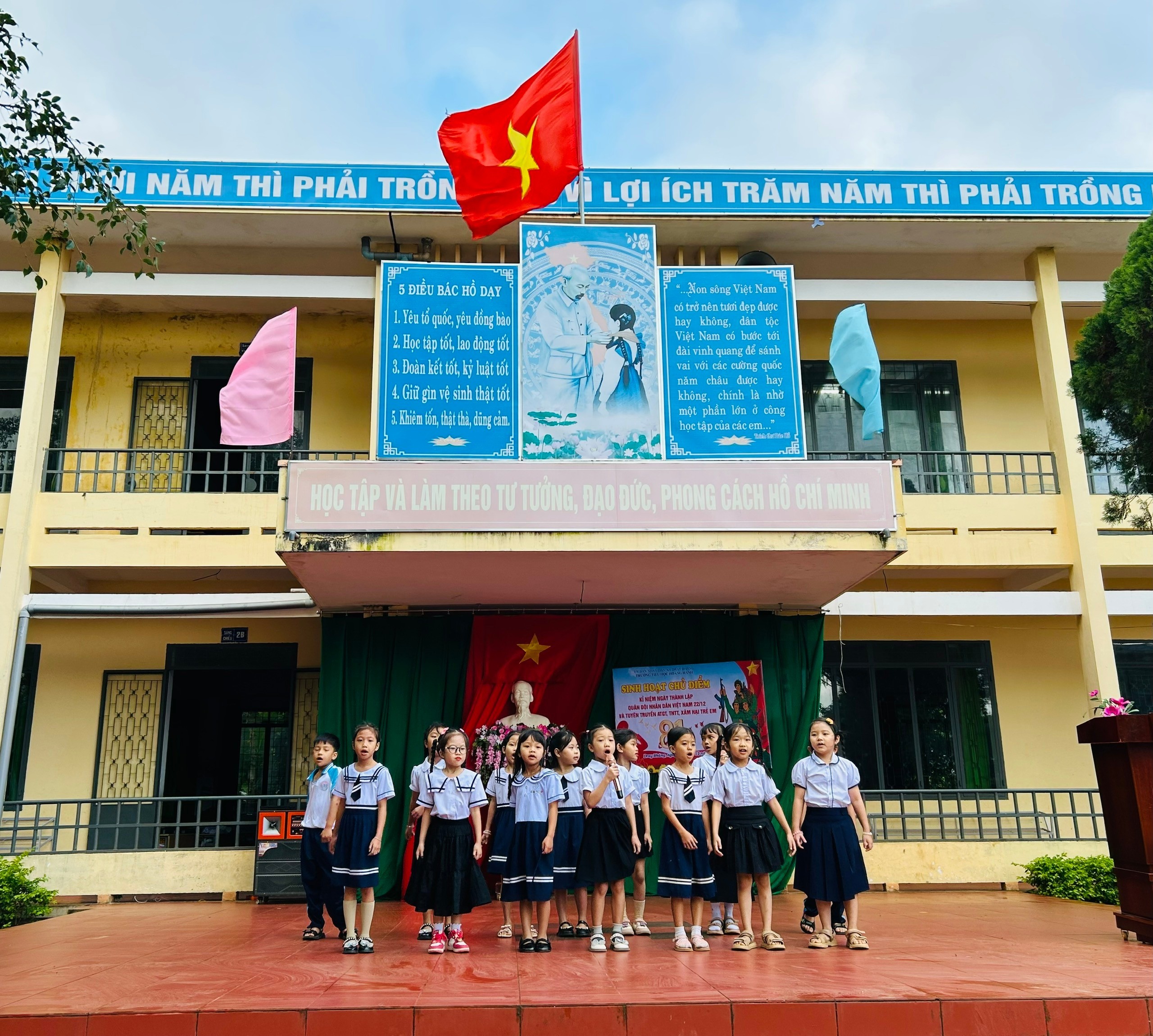 Chương trình được mở đầu bằng nghi thức chào cờ trang nghiêm, tạo nên không gian lắng đọng, thiêng liêng. Dưới lá cờ đỏ sao vàng, các em học sinh thêm hiểu và thêm tự hào về truyền thống yêu nước, tinh thần bất khuất của dân tộc Việt Nam.