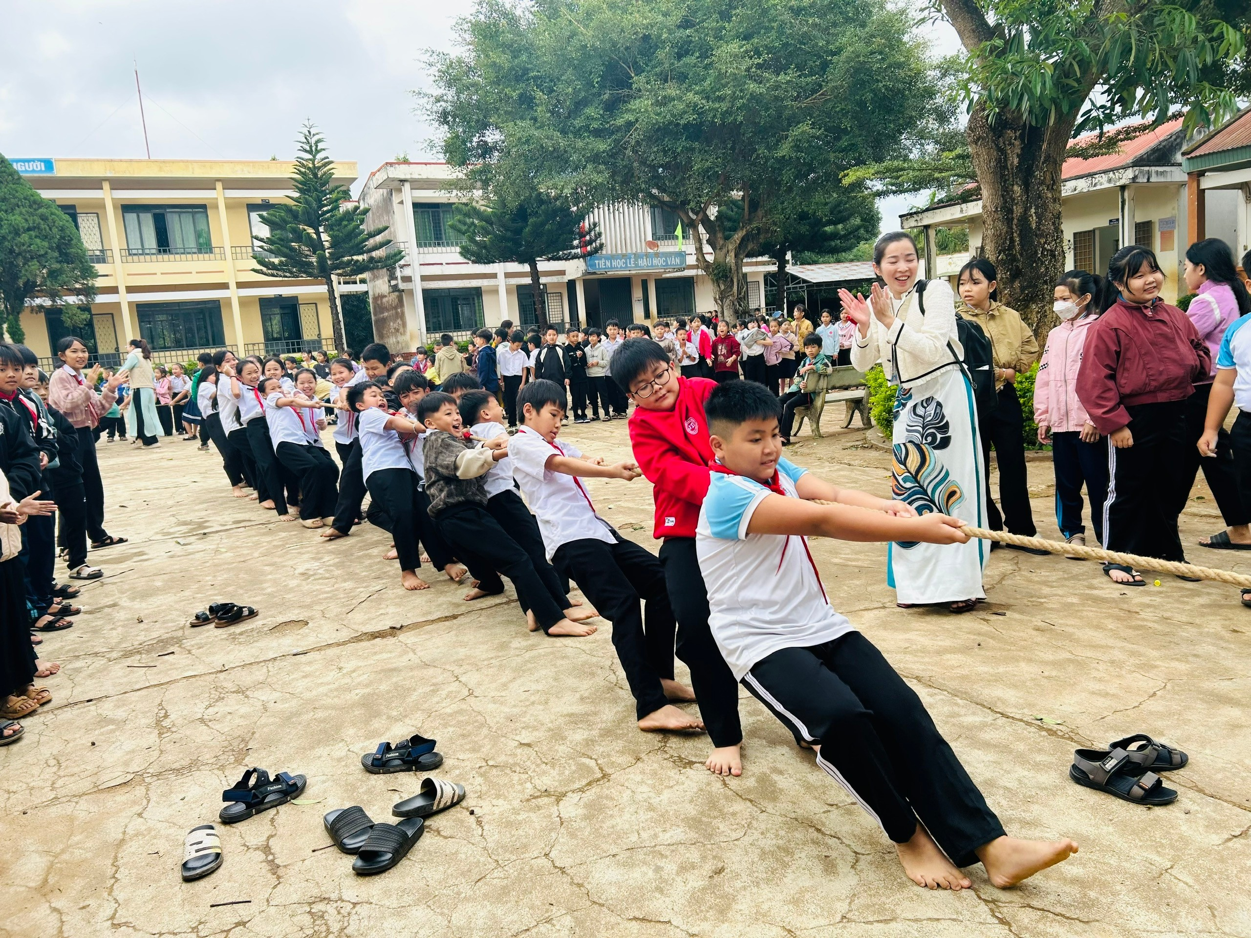 Khép lại chương trình là trò chơi kéo co sôi nổi, thu hút sự tham gia nhiệt tình của học sinh. Tiếng cổ vũ rộn ràng, những cái nắm tay chặt chẽ đã thể hiện rõ tinh thần đoàn kết, ý chí quyết tâm và niềm vui tập thể, tiếp thêm năng lượng tích cực cho tuần học mới.